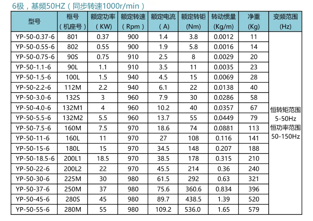 YP-50-2.2-6 YP-50-3.0-6 YP-50-5.5-6 YP-50-7.5-6 YP-50-11-6 YP-50-15-6