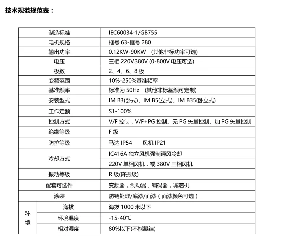 YP變頻系列4極型號(hào)