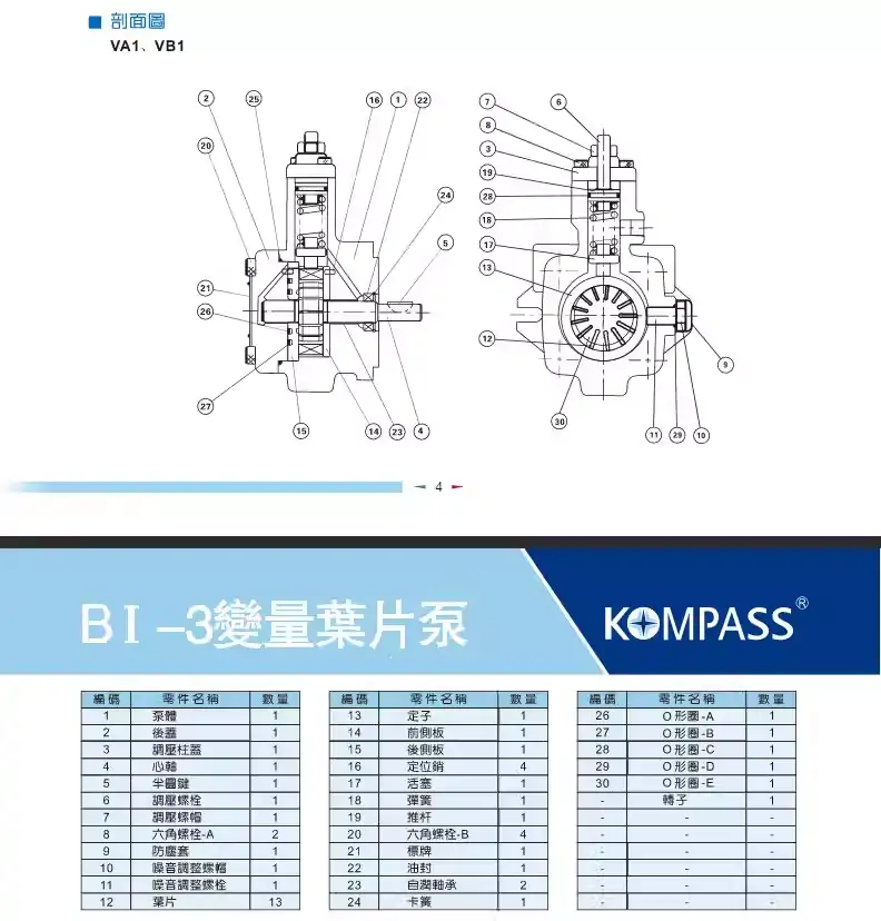 VB1-20F-A3康百世KOMPASS變量葉片泵 VA1-15F VD1 30F VE1-40F-A2
